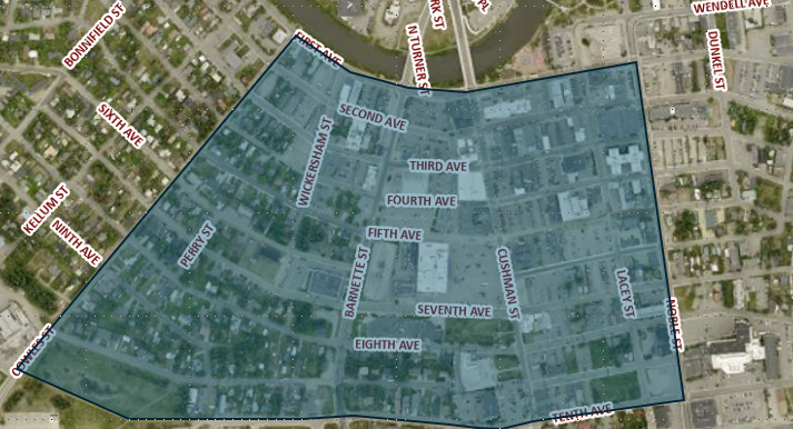 The program area is from 1st Avenue to 10th Avenue and Cowles Street to Noble Street.